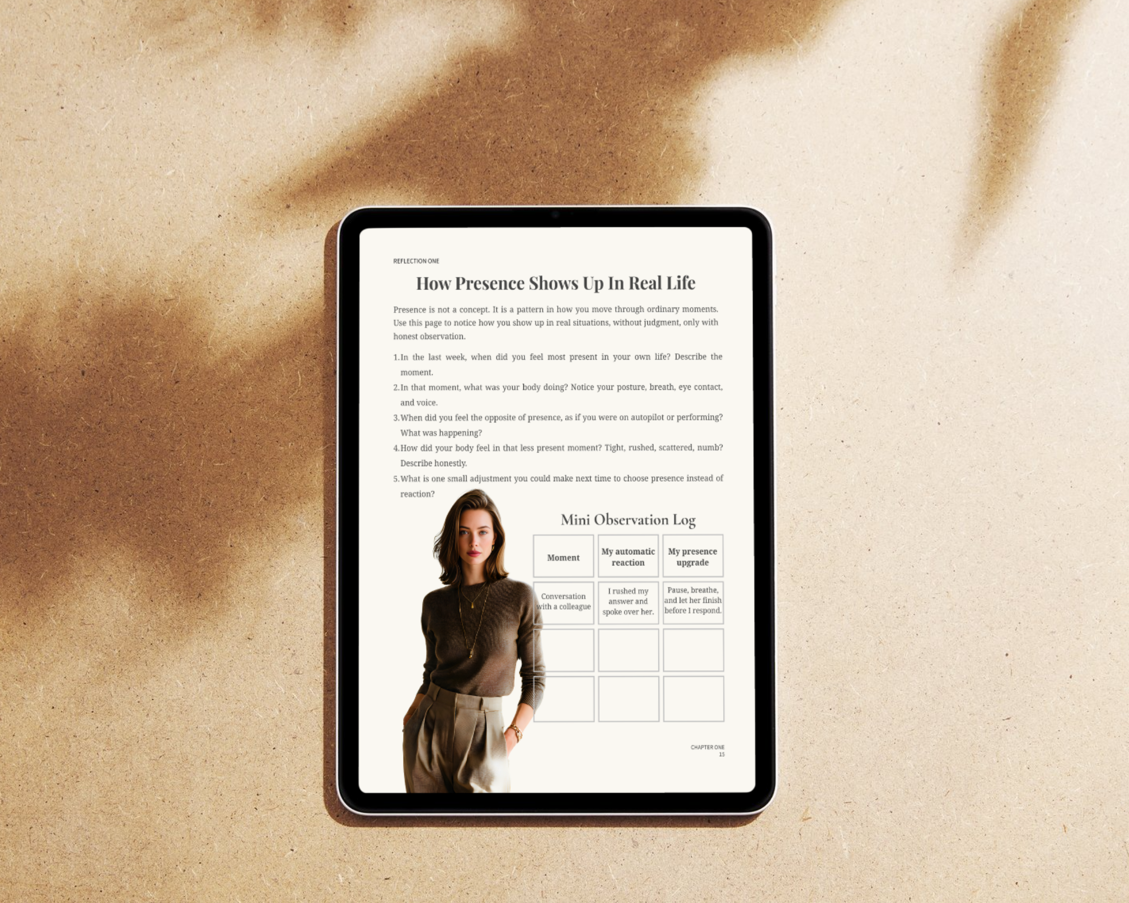 • Reflection and observation pages to track how you show up
